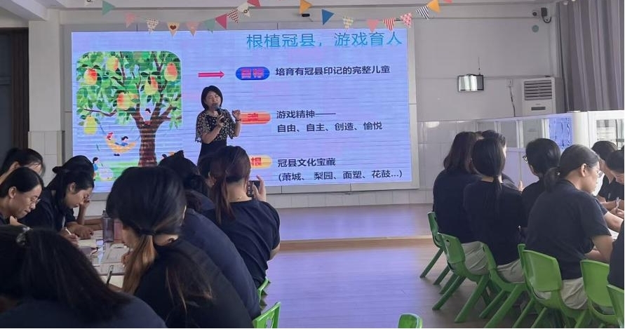 马丽君立足剖析课程园本化的核心理念与定位,就如何深入挖掘冠县本土文化资源、促进幼儿园园本课程建设、推动园本特色文化的持续发展等进行了详细的培训与深入的研讨,提升他们的综合素质与能力,为园本课程的顺利开展保驾护航。