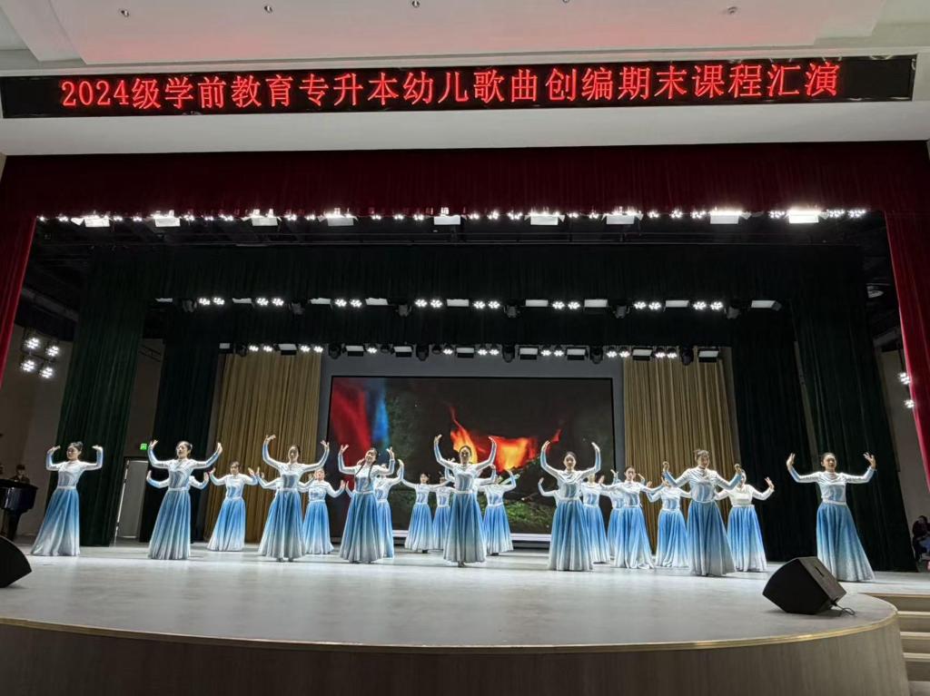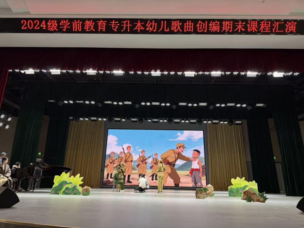 为展示专业实践教学成果,提升学生艺术创编与实践能力,12月31日,教育系2024级学前教育专升本幼儿歌曲创编课程汇演于音乐厅圆满落幕。